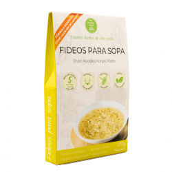 Arroz Konjac ShiratakiLos fideos konjac para sopar son fideos cortos, tipo cabello de ángel, pensados para que puedas hacer tus platos habituales (fideuá, sopas, ensaladas etc.) La pasta de konjac, a diferencia de la tradicional, permite realizar comidas saludables y seguir una dieta baja en carbohidratos. Son perfectas para cualquier dieta o simplemente para mantener hábitos saludables.